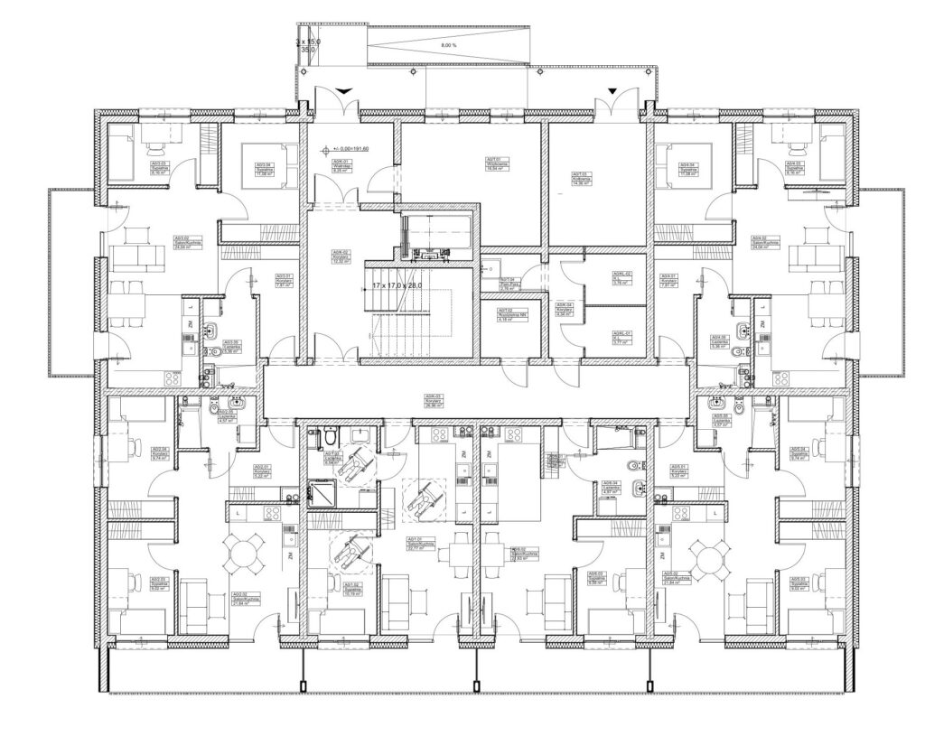 • 8 mieszkań 2-pokojowych – ok. 39 m²